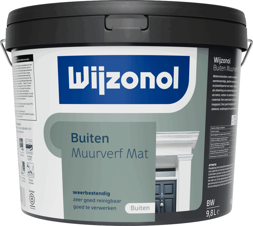 Wijzonol Muurverf voor Buiten Mat Op steenachtige ondergronden als beton, metsel- en pleisterwerk en plaatmateriaal.