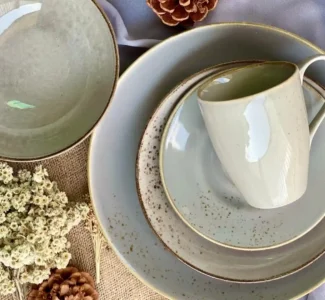 De kleuren uit de Cool Warmth kleurtrend combineren prachtig met materialen als hout, linnen en keramiek. Deze natuurlijke elementen versterken de balans tussen frisheid en warmte in je interieur.