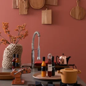 Burnt Orange is een warme, veelzijdige kleur die sfeer, diepte en karakter toevoegt aan interieur, mode en design. Hij combineert prachtig met blauw, paars en natuurlijke tinten en is verkrijgbaar in alle Wijzonol verfproducten.