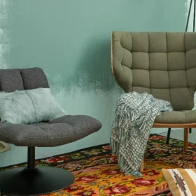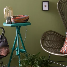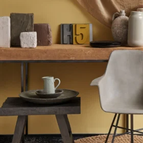 Een gedurfde en creatieve mix van modern en vintage, van fantasie met zakelijk. Zeereigentijds, zorgeloos en eigenzinnig. Maak een muur in fris geel als achtergrond voor cognackleurige leren of houten meubels. Zet koele grijzen en vintage vergrijsde groenen tegenover natuurlijk warm bruin en modern energiek geel. Speel met bloemen aan de muurof op de vloer. Accenten van zacht oranje benadrukken het vintage gevoel.