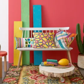 Denk aan tropische oorden als Haïti! Harde tropische kleuren in de mix, het ongeschuurd hout in felle kleuren maken het tot een zomerse trend! Makkelijk zelf te maken. Rol de ruwe planken met een bijna droge verfroller voor het juiste effect.