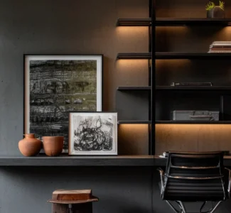 In deze collage een spel van warme neutralen. De kleuren van blank hout, licht suède, blond haar, camel en kopertinten. In onze hang naar rust en natuurlijke materialen speelt hout een belangrijke en inspirerende rol. Het gamma wordt pas echt spannend en actueel als er accenten zijn van koper (en) of goud en aluminium. Verschillende optieken samenvoegen is belangrijk. Ook is het interessant om verschillende tonen van dezelfde kleur naast elkaar te gebruiken als een soort schaduw en dégradé zoals in het kunstwerk links onderin.